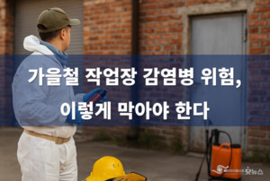 [세이프티퍼스트닷뉴스] 가을철은 풀과 진드기, 설치류 등과의 접촉을 통해 열성 감염병이 발생하기 쉬운 시기다. 대표적인 질환으로는 쯔쯔가무시병, 렙토스피라증, 신증후군출혈열 등이 있으며, 농작업이나 야외활동 중 감염될 가능성이 크기 때문에 사업장 보건 관리자의 각별한 관리가 요구된다. 우선 작업 전 준비 단계에서 보호복 착용은 필수다. 긴팔과 긴바지, 장화, 장갑, 모자, 목수건 등을 착용해 피부 노출을 최소화해야 하며, 바지 밑단은 반드시 양말이나 장화 속에 넣어야 한다. 샌들 착용은 금지된다. 또한 진드기 기피제를 노출된 피부와