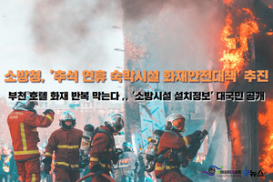 [세이프티퍼스트닷뉴스] 소방청이 경기도 부천시 호텔 화재 후속 조치 일환으로 숙박시설 이용객의 안전 확보를 위하여 『추석 연휴 대비 숙박시설 화재안전대책』을 추진한다고 밝혔다. 지난 8월 22일(목) 경기도 부천시 호텔 코보스의 객실(810호)에 설치된 에어컨 전원선에서 화재가 발생해 화염과 연기가 복도와 계단으로 급속히 확산해 7명이 숨지고 11명이 다치는 등 다수 인명피해가 발생했다. 이에 소방청은 다가오는 추석 연휴 기간 동안 국민들이 안전하게 숙박시설을 이용할 수 있도록 「숙박시설 화재안전대책」을 추진한다. 안전대책의 주요내