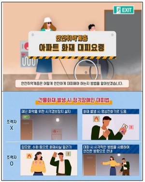 [세이프티퍼스트닷뉴스] 소방청(청장 허석곤)은 장애인 등 안전취약계층을 대상으로 화재안전과 응급처치에 관한 맞춤형 영상 교재를 제작하고 교육을 강화한다고 밝혔다. 이번 영상 교재는 ▲화재예방 ▲화재 대피(공통) ▲화재 대피(아파트) ▲응급처치 등 4개 분야로 제작되었으며, 전국 시도 소방본부 및 안전체험관에 배포되어 활용될 예정이다. 특히, 시각·청각·지체 장애 등 장애 특성을 반영하여 수어, 자막, 오디오를 활용해 정보의 접근성을 높였으며, 영어, 중국어, 베트남어 등 외국어 버전도 함께 제작되어 국내 거주 외국인들에게 유용한 정