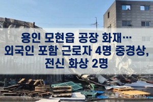 【세이프티퍼스트닷뉴스】 지난 11일 오후 4시 42분경, 경기도 용인시 처인구 모현읍에 위치한 한 폴리에틸렌 폼 제조공장에서 대형 화재가 발생했다. 현장은 폭발음을 동반한 급격한 화염으로 순식간에 불길이 치솟았으며, 소방당국은 곧바로 대응 1단계를 발령하고 장비 35대와 인력 102명을 투입해 진화 작업에 나섰다. 화재는 약 1시간 후인 오후 5시 39분경 완전히 진압됐다. 이번 화재로 인해 총 4명이 부상을 입었으며, 그중 2명은 전신 화상을 입은 중상자로 확인됐다. 중상자는 캄보디아 국적의 20대 및 30대 남성 근로자들로, 현