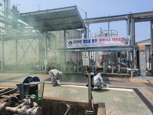 [세이프티퍼스트닷뉴스] 군산시가 이차전지 신물질 등 화학사고에 대한 현장 대응 역량을 높이기 위해 민간기업과 손잡고 협업 훈련을 실시했다. 이번 훈련은 시가 조달청의 혁신제품 시범 사용기관으로 지정된 이후, 실전 활용을 검증하는 첫 사례로 주목된다. 시는 지난 8일 ㈜한농화성 군산 1공장에서 ㈜한농화성, ㈜SH에너지화학, 내일기업(주)와 함께 민관 협업 방식의 화학사고 대응 훈련을 진행했다. SH에너지화학은 소방차를 지원했고, 내일기업은 자사 혁신제품인 시인성 흡착포를 제공해 기업 간 상호지원 체계를 강화했다. 흡착포는 산성 물질