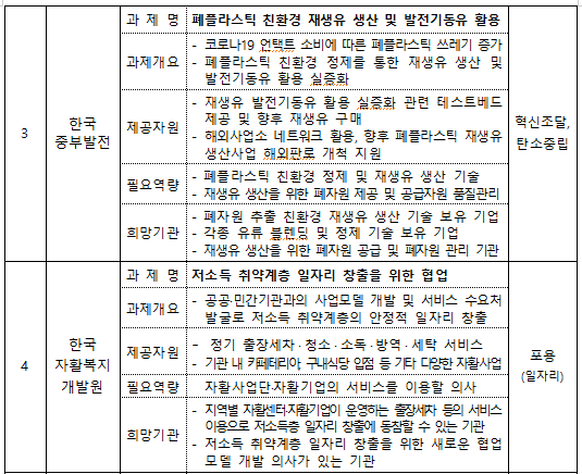 이처럼 '협업이음터' 은 공공기관과 민간기업을 이어주는 가교역할을 담당하고 있으며, 이번 21년도 주요 협업이음터 과제는 중앙부처·지방자치단체·공공기관·교육청이 협업이음터에 새롭게 등록한 296개 협업이음 수요 과제 중 전문가심사 등을 거쳐 엄선하여 선정되었다.