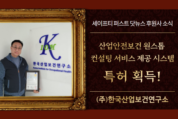 산업보건분야의 토탈 솔루션을 제공하고 있는 ㈜한국산업보건연구소에서 지난 2월 1일 ‘산업안전보건 원스톱컨설팅 서비스 제공 시스템’이라는 특허를 획득하였다.
