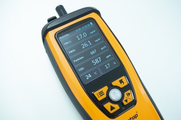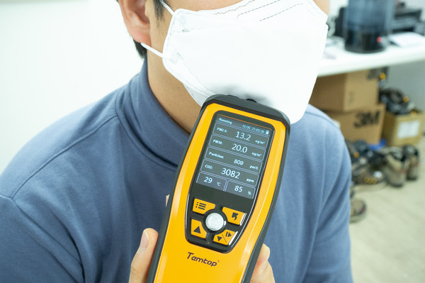 실내공간의 이산화탄소 농도를 측정하기 위해서 비교적 환기가 양호한 곳에서 Temptop M2000C 실내공기질 측정기를 사용해서 이산화탄소 농도를 측정했습니다. 신선한 공기 기준으로 400ppm 정도의 이산화탄소가 존재하는데 실내공간에서는 700ppm 이하면 상단히 준수한 수준으로 판단할 수 있습니다. 실험에 사용된 공간은 587ppm으로 매우 쾌적한 이산화탄소 농도를 유지하고 있었습니다.