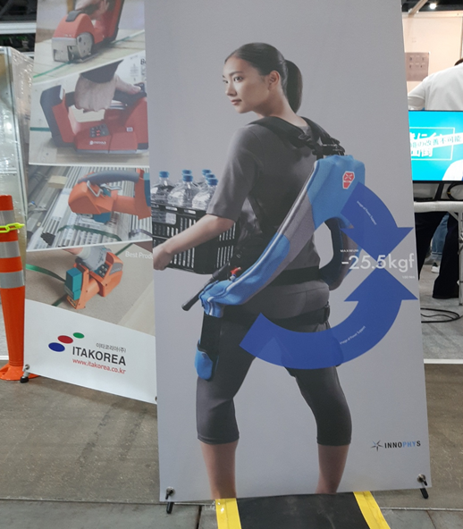 지난달 5월 25일부터 5월 28일까지 고양시 킨텍스에서 '국제물류산업대전'이 개최되었다. 이번 전시회에는 물류 산업에서 필요한 이동형 대차, Packing, 작업공간설계, 제품의 무게와 체적을 고려한 식별기, 웨어러블 슈트, 자동랩핑기 등 많은 산업 장비가 전시되었는데 특히 근골격계질환의 위험요인을 감소시키기 위한 여러 다양한 제품들이 전시되어 관람객들의 시선을 집중시켰다.