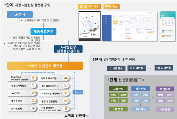 더불어 다양한 국적의 근로자를 지원할 수 있는 다국어 서비스는 물론 관리자와 근로자 간 양방향 소통체계 운영이 가능한 기능도 확대하며, LH 빅데이터센터와의 연계로 스마트 안전통합플랫폼의 분석데이터도 제공한다.