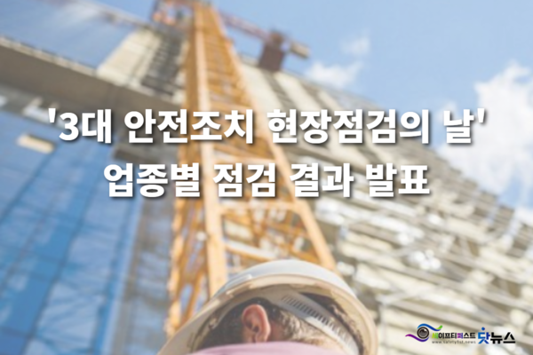 [세이프티퍼스트닷뉴스] 고용노동부(장관 안경덕)는 지난 7월과 8월에 실시한 4차례 「3대 안전조치 현장점검의 날」 일제 점검 결과를 발표했다.