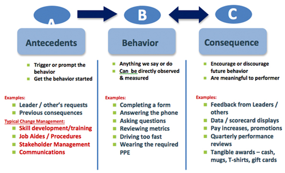 ABC분석의 기능은 사업장에서 가장 다루기 어려운 안전문제를 이해하는 것이다. 응용행동분석의 기본 도구로 행동을 유발하는 매우 강력한 자극전제조건은 그 자체만으로 어떤 행동을 직접적으로 결정하도록 만들지는 못한다. 전제조건은 예상되는 결과와 함께 어떤 행동을 이끌어낸다. 어떤 전제조건 및 결과가 특정 행동에 영향을 미치는지 파악하는 것이 ABC분석의 목적이다.