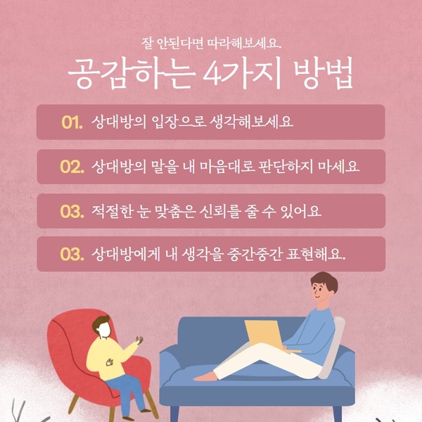 오늘은 상대의 마음을 공감해주는 방법에 대해 함께 나누고자 합니다.