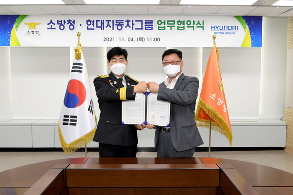 이러한 안전에 대한 불안감을 해결하기 위해 소방청(청장 신열우)은 현대자동차그룹과 증가하는 친환경차량의 화재예방과 차량 화재진압·인명구조 등 협력을 위해 지난 11월 4일 소방청 최병일 차장, 현대차그룹 김동한 연구개발지원사업부장 등이 참석한 가운데 업무협약을 체결하였다.