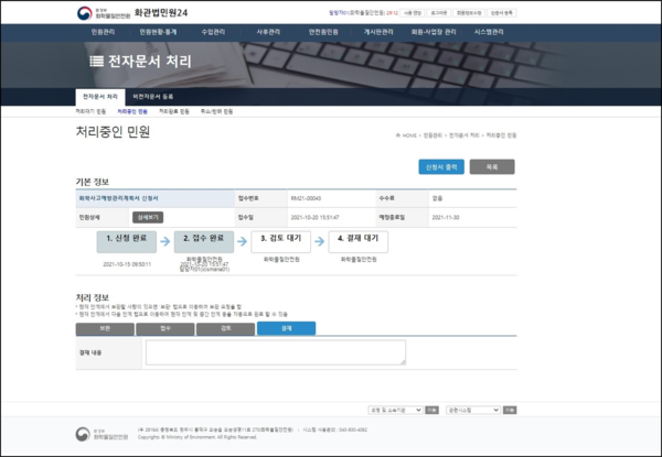 이제까지는 민원인이 화학사고예방관리계획서를 접수하거나, 심사 결과물을 받기 위해서 청주시 흥덕구 오송읍에 소재한 화학물질안전원에 최소 2번이상 직접 방문을 해야 했으나, 이번 온라인 민원처리 시스템 구축덕분에 인터넷으로 편리하게 제출할 수 있게 되어 방문 시간과 교통 비용을 줄일 수 있게 됐다.