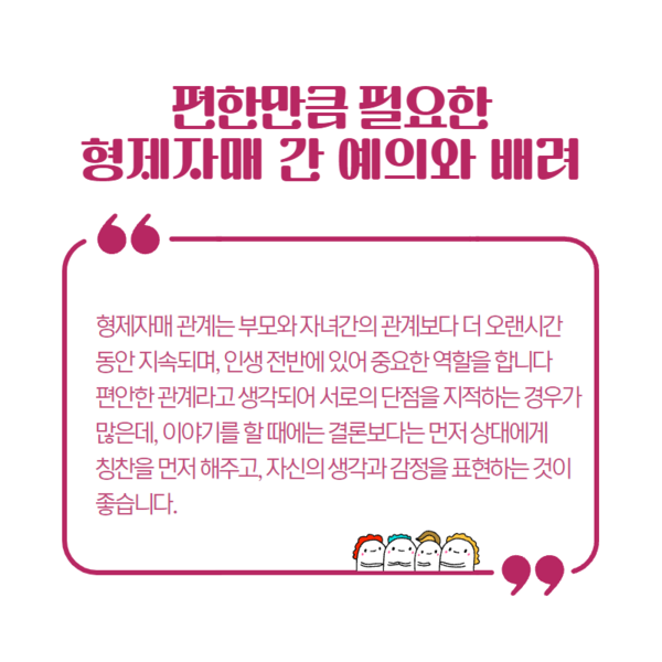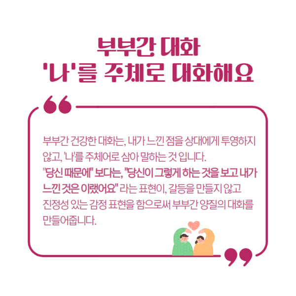 부부사이에, 부모와 자녀사이에서, 형제와 자매사이에서는 어떻게 대화를 해야 소통과 공감을 나눌수 있는지 함께 살펴보고자 합니다.