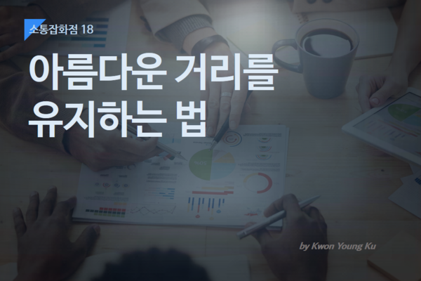 거꾸로 밤 12시반에 회사동료에게 "김대리, 지금 자?" 이런 짓은 예의가 아니다. 서로 예의를 잘 지키기만 해도, 아름다운 거리를 유지할 수 있다.
