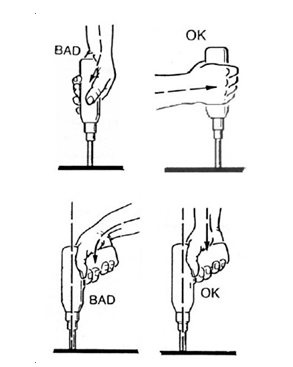 - 수공구의 무게 중심은 손의 무게중심에 맞게 설계