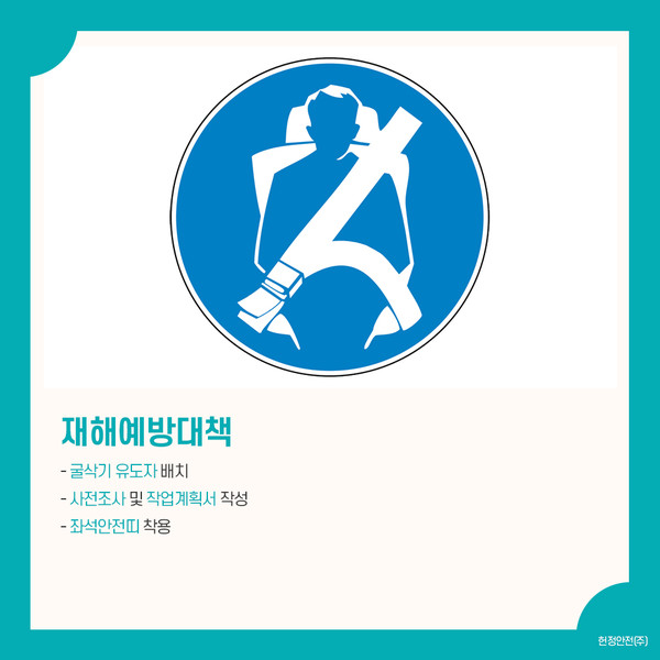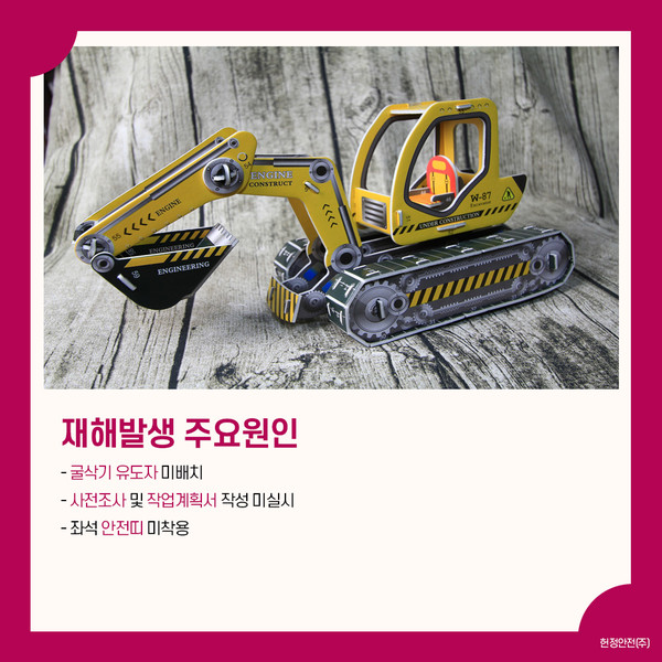 - 좌석 안전띠를 미착용하여 굴착기 궤도가 이동식 발판을 이탈하여 전복되는 순간 좌석에서 뛰어내려 굴착기 본체에 깔리는 재해를 초래하였습니다.