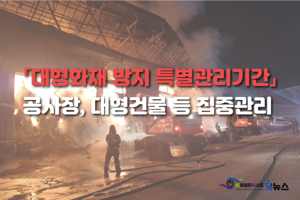 [세이프티퍼스트닷뉴스] 소방청(청장 이흥교)은 2022년 4월까지 전국 모든 소방관서가 “대형화재 방지 특별관리기간” 에 돌입한다고 20일 밝혔다.