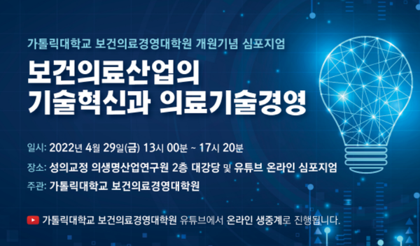 심포지엄은 유튜브 '가톨릭대학교 보건의료경영대학원' 채널에서 생중계 될 예정이며, 보건의료에 관심 있는 사람이라면 누구나 별도의 참가 신청 없이 온라인 심포지엄에 참가할 수 있다.