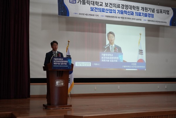 29일 오후 1시 서울 가톨릭대학교 의생명산업연구원 2층에서는 가톨릭대학교가 보건대학원과 의료경영대학원을 통합한 보건의료경영대학원 개원을 기념하며, '보건의료산업의 기술혁신과 의료기술경영'이라는 제목으로 심포지엄을 개최했다.