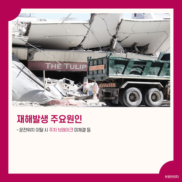 이번에 소개할 재해 사고는 살수차량이 경사로에서 굴러 내려와 두 차량 사이에 끼여 사망한 사고입니다.