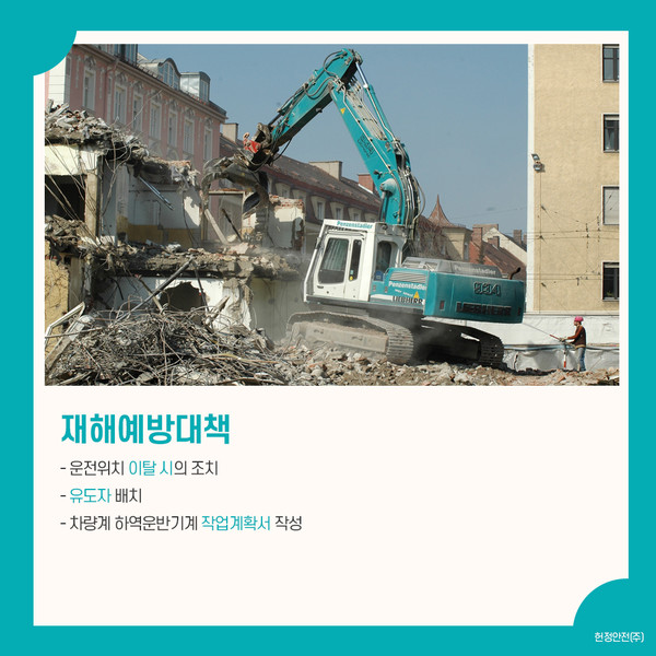 유도자를 배치하여 차량계 하역운반기계(기인물) 및 건설기계(덤프트럭)의 접촉방지 등의 조치를 취해야 합니다.