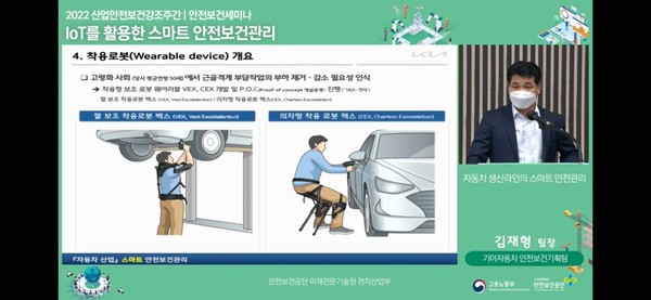 기아(주) 안전환경센터 안전경영기획팀의 김재형 팀장은 '근원적 산업재해예방 위한 스마트기술과 자동차 적용사례'라는 주제로 발표를 진행했으며, 발제와 질의 응답을 통해 스마트기술을 활용한 안전보건관리를 하기 위해 궁극적으로 현장에 필요한 부분이 무엇인지를 현장 실무자의 입장에서 제언했다.