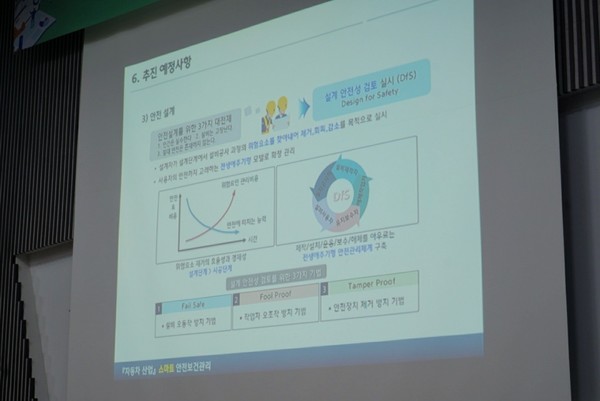 그는 스마트기술 적용에 대한 향후 계획에 대해서 발표했는데, 설계안전성 검토를 위한 3가지 기법(fail safe디자인, fool proof디자인, tamper proof 디자인)을 도입하여 기업내 기계와 설비에 대한 안전설계 계획을 소개했다.