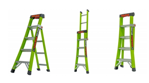 ②개선된 안전 사다리는 유리섬유 (fiberglass) 소재를 사용해 무게를 줄였으며, 하나의 사다리로 3가지 형태 (A형,일자형, 연장된 일자형) 로 변형하여 다용도로 사용할 수 있도록 제작됨