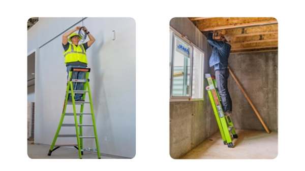 가볍고 내구성이 뛰어난 유리 섬유로 제작되어 전도성에 대한 두려움없이 전기 작업을 할 수 있다. Hi-Viz 녹색은 가시성을 높여 사다리 범핑(유격)을 줄여준다. Ground Cue®King Kombo Industrial 및 Technical 모델은 바닥 단계 경보 시스템 인 Ground Cue®의 이점을 누릴 수 있어 맨 아래 단계에 도달하면 Ground Cue는 "딸깍"소리를 내며 안전하게지면에 도달했음을 알다. V-Bar Industrial and Technical King Kombo 사다리 확장시 손상되지 않은 V-bar는 외부 모서리, 벽 및 스터드를 잡을 수 있다. 모든 사다리는 OSHA 및 ANSI 표준을 충족하며, 375lbs를 수용 할 수 있다.