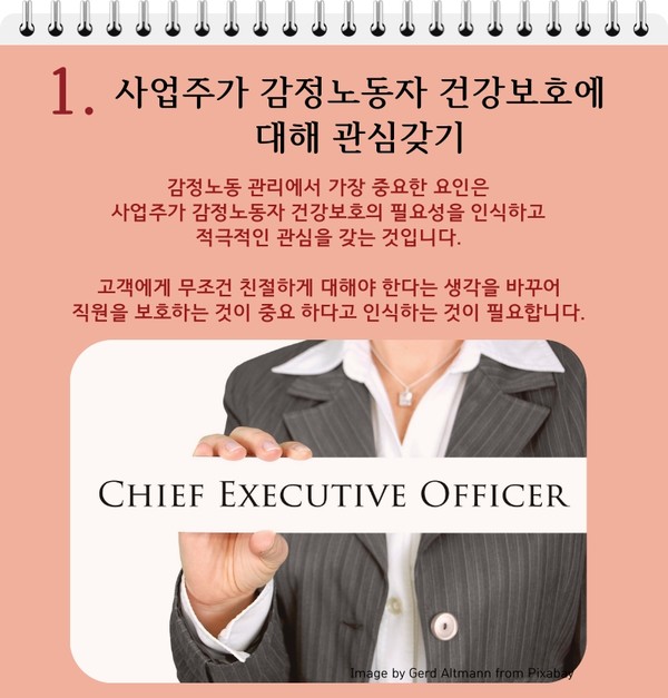 감정노동자가 급증하고 있는 요즘,, 감정노동관리를 위한 예방법에 대해서 알아보자. https://blog.naver.com/igtalk 관련기사 사회적 거리두기 강화,,,이럴 때일수록 스트레스 관리에 신경써야 한다. 키워드 #감정노동 #산업보건 #보건관리자 #감정노동자 #일터건강톡 #세이프티퍼스트닷뉴스 김주환 명예 기자 kung98@hanmail.net 다른기사 보기 저작권자 © 세이프티퍼스트닷뉴스 무단전재 및 재배포 금지 당신만 안 본 뉴스 울산화력발전소 붕괴사고, 200시간의 사투 끝에 마지막 매몰자 수습… “해체공정 안전기준 전면 재검토 불가피” [ SIF 안전문화 Ⅴ ] BBS를 넘어 PBS로: 사람을 탓하지 않고 행동을 이해하는 법 엠라인스튜디오, 독일 A+A 2025서 글로벌 기업·기관의 집중 조명… XR 안전교육 기술력 부각 [베테랑 건설안전전문가의 시선] 발주자 안전책임, 해외는 ‘의무’… 한국은 왜 제도화 못했나 안전관리 왜곡 묘사에 대한 현장의 우려와 제언 울산화력발전소 붕괴사고, 200시간의 사투 끝에 마지막 매몰자 수습… “해체공정 안전기준 전면 재검토 불가피” 댓글삭제 삭제한 댓글은 다시 복구할 수 없습니다. 그래도 삭제하시겠습니까? 비밀번호 닫기 기사 댓글 0 댓글 접기 로그인 후 이용 가능합니다. 댓글 내용입력 비회원 로그인 이름 비밀번호 댓글 내용입력 댓글쓰기 계정을 선택하시면 로그인·계정인증을 통해 댓글을 남기실 수 있습니다. 회원 로그인 비회원 글쓰기 이름 비밀번호 자동등록방지 로그인 옵션 창닫기 주요기사 드라마 장면으로 재조명된 안전관리 인식 현주소 안전관리 왜곡 묘사에 대한 현장의 우려와 제언 [ SIF 안전문화 Ⅴ ] BBS를 넘어 PBS로: 사람을 탓하지 않고 행동을 이해하는 법 온세이프티, 직업건강협회와 산업안전보건 교육의 디지털 전환 동행… 교육 접근성 강화 나서 진성전문가되기 82부 - 평균의 함정, 지반 설계의 착각 : 가상에서 맞춤으로 율촌·숭실안전보건포럼, 노동안전정책 강화 이후 현장 컴플라이언스 해법 모색