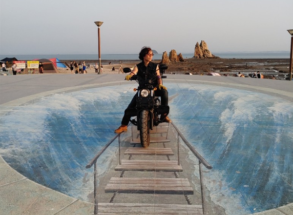 작년부터 모터바이크에 취미를 붙이기 시작하면서 기분전환좀 할겸 여기저기를 다니고 있는데 얼마 전에는 제부도를 갔다. 제부도 남동쪽 끝에 있는 매바위공원에는 바닥에 재미난 그림이 그려져 있다. 직접보면 2차원 그림이 확실하지만 사진을 찍어서 보니 실감나는 3차원이었다. 10년전 부터 해외에서 유행하기 시작한 3차원 그림들이 이제는 한국 곳곳에서도 쉽게 찾아볼수가 있다. 이러한 3차원 그림들은 인간의 착시현상을 이용한 그림이다'