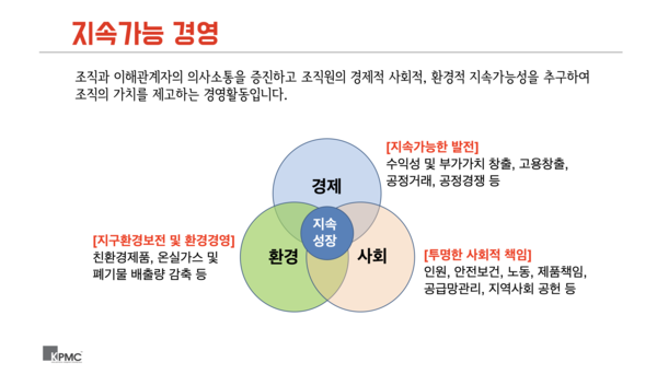 이러한 환경/안전과 관련된 대내외 이슈에 대하여 조직은 관련 이해관계자의 의사소통을 증진하고 조직원의 경제적, 사회적, 환경적 지속가능성을 추구하여 조직의 가치를 제고하는 지속 가능 경영을 실천해야겠습니다.