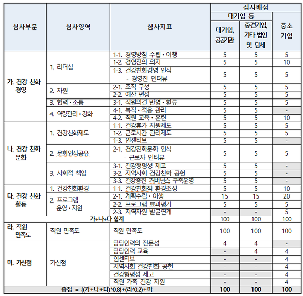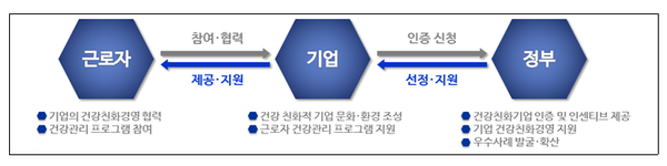 - '건강친화기업 인증제도' 본격 시행,, 근로자 건강관리 지원·노력하는 기업 발굴 및 확대