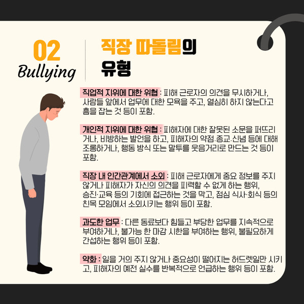 많은 근로자가 직장에서의 인간관계로 힘들어 합니다. 직장 내 갈등은 따돌림으로 이어질 수 있습니다. 직장에서의 따돌림에 대해서 알아 봅니다.