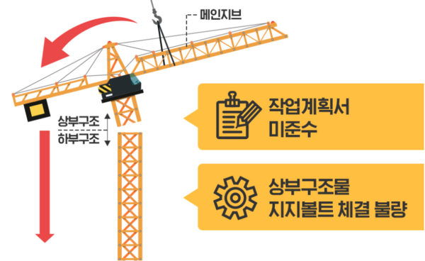 조사결과 사고 원인으로는 ▲타워크레인 해체 작업계획서 미준수, ▲타워크레인 상부 구조물 지지 볼트 체결 불량 등이 지적됐었다.