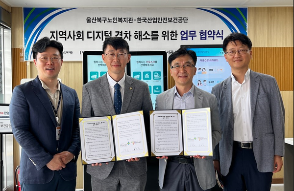 [세이프티퍼스트닷뉴스] 고용노동부 산하 안전보건공단(이하 ‘공단’, 이사장 안종주)이 디지털 기기로부터 소외된 지역사회 고령층의 디지털 격차 해소를 위해 울산북구노인복지관(이하 ‘복지관’)과 업무협약(이하 ‘협약’)을 체결했다.