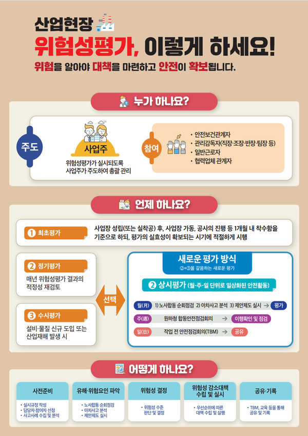 - 지난 5월, 위험성평가 고시 개정을 통한 위험성평가 절차와 방법을 대폭 개선