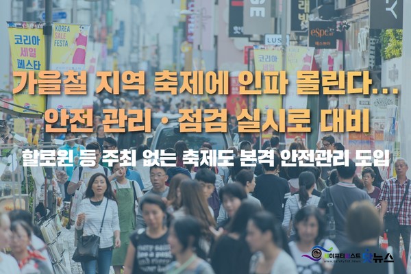 [세이프티퍼스트닷뉴스] 행정안전부(장관 이상민)는 9월 27일부터 11월 30일까지 ‘가을철 인파밀집 안전관리 대책 기간’을 운영한다고 밝혔다.