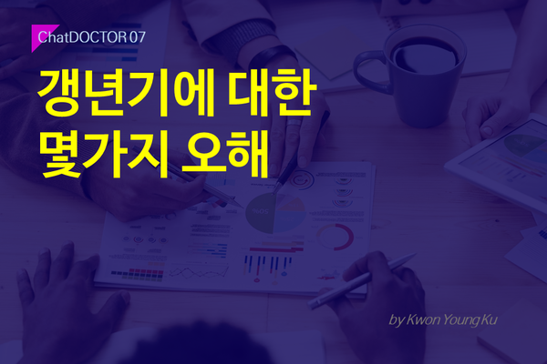 갱년기라는 말이 아주 흔하지만, 의외로 그 뜻을 정확히 아는 사람은 드물다. ‘감기’처럼 병명중 하나라고 생각하는 분들이 너무 많다. 폐경이 올 때 여기저기 몸이 안좋아지는 그 증상을 ‘갱년기’라고 부르는 줄 안다. 진료 중에 “이제 갱년기에 접어 드셨으니, 이런저런 부분을 조심하시고...” 말씀드리면, “네? 저는 얼굴도 안 뜨겁고, 생리도 아직 멀쩡하게 잘 하고 있답니다!!” 하신다.