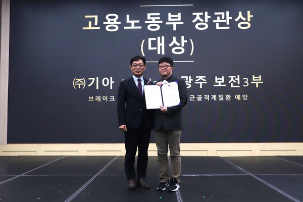 경진대회 대상은 (주)기아가 ‘브레이크 파이프 체결공구 개선’ 사례로 고용노동부 장관상을 수상했다. 해당 사업장의 작업공정은 브레이크 파이프의 체결 각도가 45도로 작업 시 어깨가 들리고 손목이 꺾인 상태에서 체결을 위한 반복동작이 10회 이상 반복되어 근골격계질환의 가능성이 높았다.