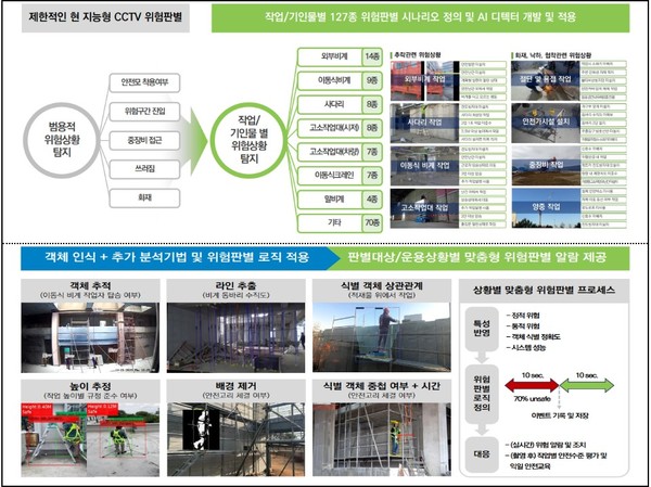 수상기관인 콘티랩(주)는 중소 건설현장 중대재해 예방을 위해 AI 기술을 활용하여 위험작업 시 작업장 및 근로자의 안전 상황을 원격·자동으로 판별하고 관제할 수 있는 플랫폼을 개발하였다. 현재는 제한적으로 지능형 CCTV가 위험판별을 하고 있으나, 작업별 127종의 위험판별 시나리오를 정의하고 해당 시나리오를 판단할 수 있는 AI 디텍터를 개발하여 지능형 CCTV 기능을 향상했다.