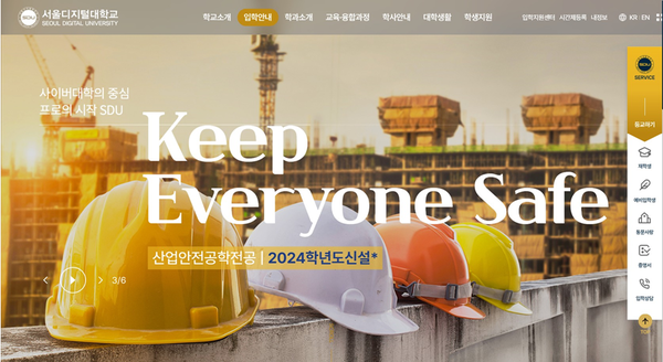[세이프티퍼스트닷뉴스] 서울디지털대학교가 2024학년도 산업안전공학전공을 신설하고 내달 17일까지 첫 신 ·편입생을 모집한다고 밝혔다. 현대와 미래 사회 산업재해 예방과 건설안전 및 보건안전 이론과 기술, 위생환경 분야의 실무역량을 갖춘 전문가를 길러내겠다는 목표다.