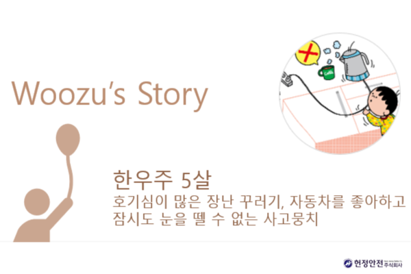 늦은 오후 목이 조금 건조하고 따끔거려서 엄마는 생강차를 마시기 위해 전기 주전자로 물을 끓이기 시작했어요. 끓기 전 빨래를 걷으러 발코니로 나갔죠. 우당탕 소리가 나더니 우주가 자지러지게 우는 소리가 들립니다. 울음소리에 소스라치게 놀란 엄마는 소리가 난 주방으로 달려갑니다.