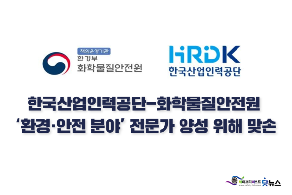 [세이프티퍼스트닷뉴스] 한국산업인력공단과 화학물질안전원’이 오는 16일 화학물질안전원에서 ‘화학·안전 전문인력 양성을 위한’ 업무협약(MOU)을 체결한다.