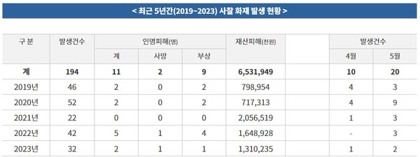 - 최근 5년간 사찰 화재 194건, 최근 2년 새 2명 숨져… '사찰 화재'에 각별한 주의 당부
