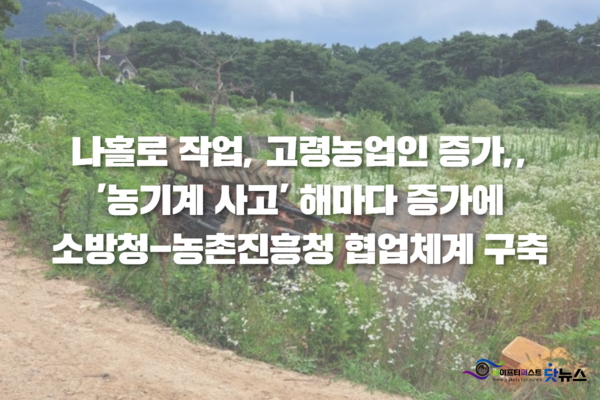 [세이프티퍼스트닷뉴스] 소방청(청장 남화영)은 농촌진흥청(청장 조재호)과 농업·농촌에서 발생하는 안전사고를 줄여나가기 위해 관련 자료 공유, 신속한 현장 대응 시스템 시범 구축 등 협업 사업을 추진할 계획이다.