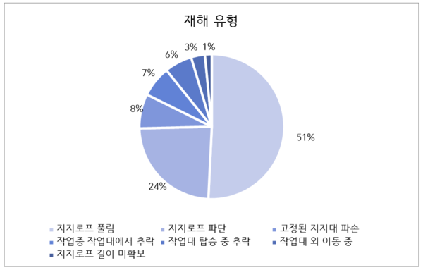 최근 10년간 달비계 사망사고 발생 현황에 따르면 달비계 사망사고가 꾸준히 발생하는 것을 조사됐다. 또한, 전국 달비계 추락재해 발생 절반 이상이 지지로프 풀림 및 파단에 의한 것을 알 수 있다