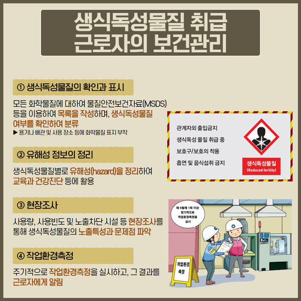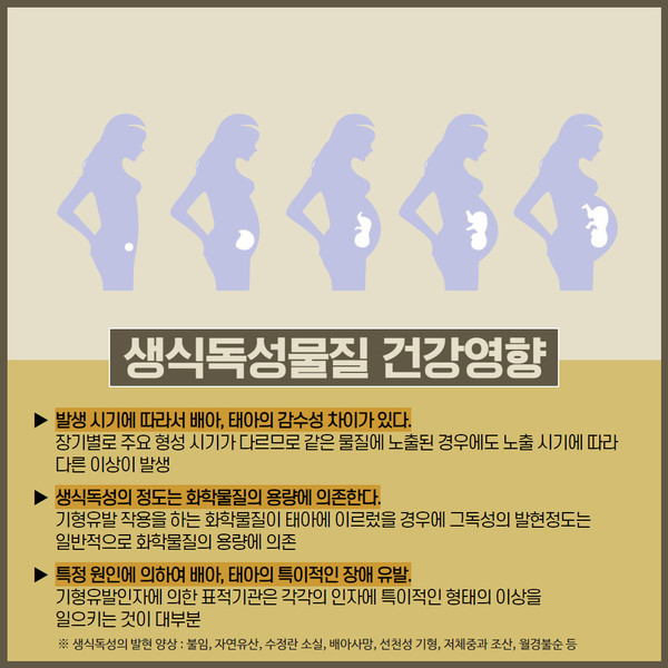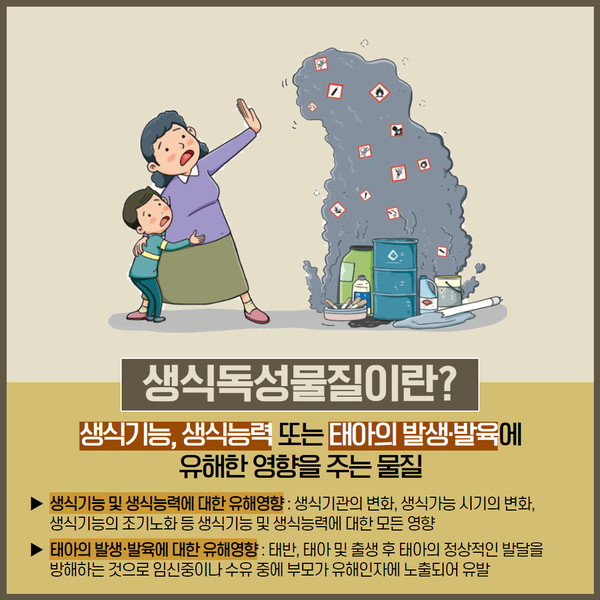 생식독성물질이란 생식기능, 생식능력 또는 태아의 발생·발육에 유해한 영향을 주는 물질입니다.