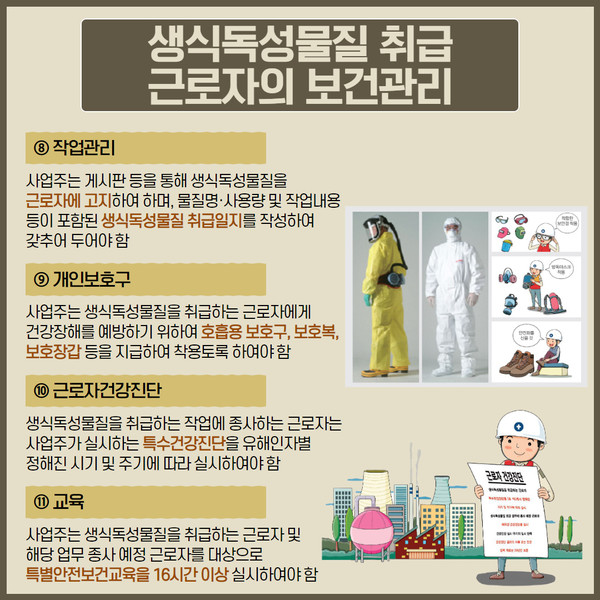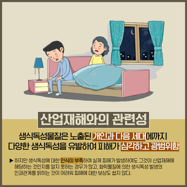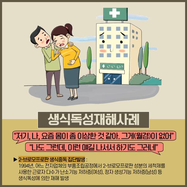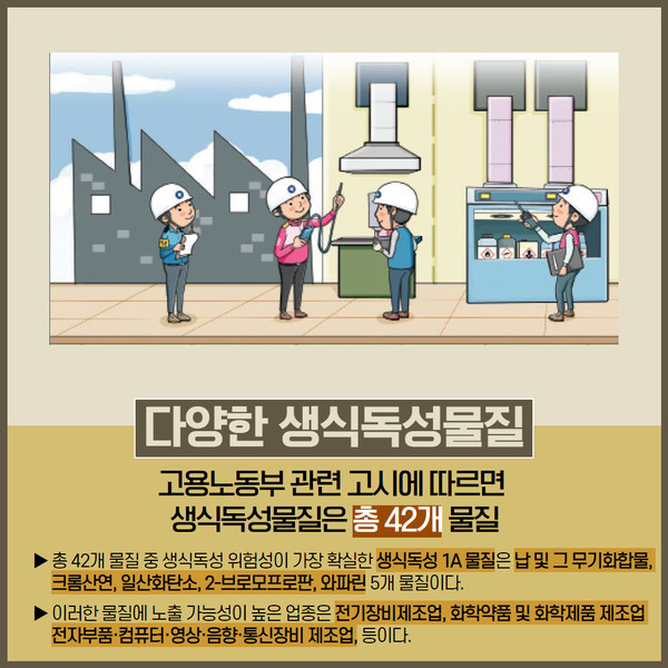 생식독성물질은 노출된 개인뿐만 아니라 다음 세대에까지 다양한 생식독성을 유발하여 피해가 심각하고 광범위합니다. 생식독성물질을 취급하는 근로자의 보건관리가 중요한 이유 입니다.