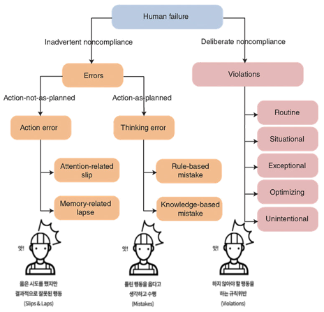 의 망각(lapse) 등으로 구분하며, 실수는 주로 주의력이 부족한 상태에서 발생하는