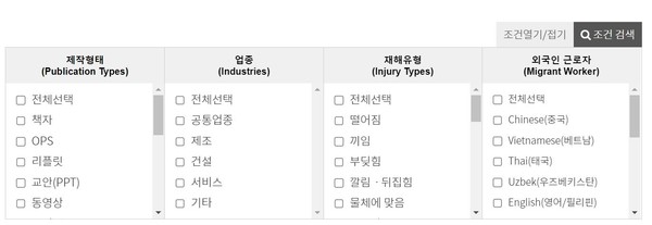 공단에서 개발된 외국인 교육자료는 안전보건공단 누리집 외에도 유튜브, 미디어 현장배송, 위기탈출 안전보건 어플 등을 통해 활용할 수 있고, 안전보건공단 누리집(https://www.kosha.or.kr/kosha/data/mediaBankMain.do)의 '전체자료실'-'외국인근로자' 항목에서 제작형태, 업종, 재해유형, 언어를 선택해서 원하는 자료를 쉽게 다운로드 하거나 해당 내요을 확인할 수 있다.